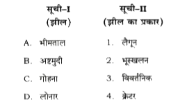 1. सूची-I को सूची-II के साथ सुमेलित कीजिए और सूचियों के नीचे दिए गए कूट क...