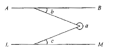 - ऊपर दिये गये चित्र में AB, LM के समानान्तर है। कोण a किसके बराबर है ?