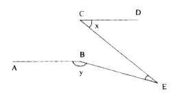 - ऊपर के चित्र में AB , CD के समान्तर है यदि angle DCE=x और angle ABE=y ...