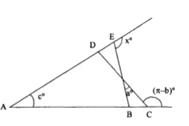 - ऊपर दिए गए चित्र में कोण x^@, a^@ ,c^@(pi-b)^@ दिखाए गए हैं। निम्नलिखि...