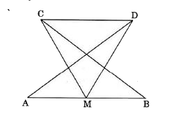 - नीचे दी गई आकृति में, AB का मध्य-बिन्दु M है तथा angle DAB = gngle C...