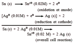 - Calculate the voltage of the cell, Sn (s) | Sn^(2+) (0.02M)| Ag^+ (...