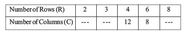 Take a squared paper and arrange 48 squares in different number of rows as shown below: What do you observe? As R increases, C decreases Is R_(1) : R_(2) = C_(2) : C_(1) ?