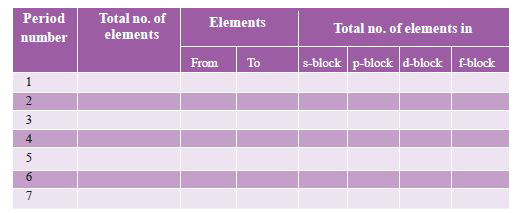 - నవీన ఆవర్తన పట్టికను ఉపయోగించే కింది పట్టికను పూర్తి చేయండి.