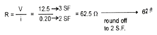 - ओम नियम प्रयोग में प्रतिरोध के परितः वोल्टमीटर का पाठ्यांक 12.5 V तथा ...