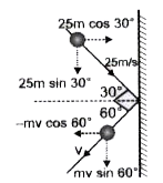 - 0.20kg की एक गेंद क्षैतिज से 30^(@) कोण पर 25m/s वेग से दीवार से टकरात...