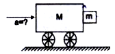 - एक M द्रव्यमान की गाड़ी पर, एक m द्रव्यमान का ब्लॉक चित्रानुसार सम्पर्...