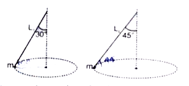 - दो कण एक क्षैतिज वृत्त में घुमती हुई विभिन्न रस्सीयो से बंधे हुए है। र...