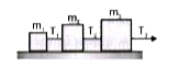 - चित्रानुसार तीन ब्लॉक एक अतन्य डोरी से बंधे हुए है घर्षण रहित क्षेतिज ...