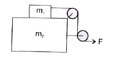 - चित्र अनुसार सभी सतह घर्षणरहीत है तथा ब्लॉक m(1) तथा m(2) का द्रव्यमान...