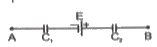 - चित्रानुसार परिपथ का एक भाग AB है। E = 10 V, C1 = 0.1 mu F, C2 = 2.0 ...