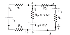 - दिये गये परिपथ में बिन्दु a और b के बीच विभवान्तर है। (i1 = 1.0 A,...