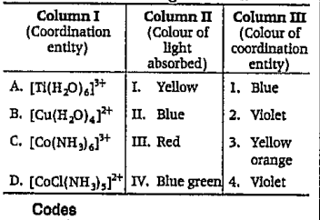 - Match the following column I with column II and choose the option with...