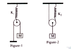 - In the arrangement shown in figure, pulleys are light and spring are i...