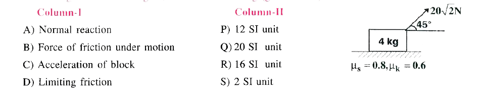 - In the diamram shown in figure , match the following (g=10m//s^(2))