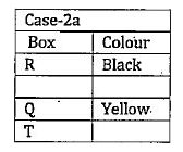 From the given conditions, two boxes are placed between R and T. Box Q is placed immediately above box T. S and Rare of green and black colour respectively. One Box is placed between yellow coloured and black coloured box. Now we have three possible case i.e. Case-1, Case-2a, Case-2b.