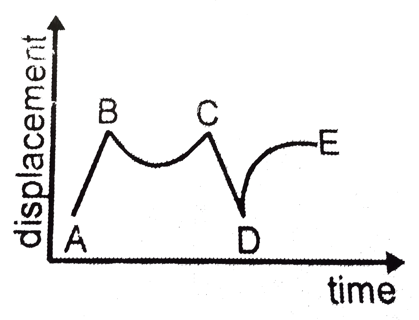 - चित्र में x - अक्ष पर चलते एक कण का विस्थापन - समय ग्राफ दि...
