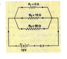 - बगल में दिये परिपथ आरेख में, 5 Omega, 10 Omega"और "30 Omega के तीन प्र...