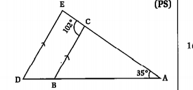 - In the adjacent figure, it is given that, BC || DE, angleBAC = 35^@ an...