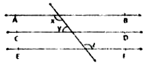 - दिए गए चित्र में: यदि AB ||CD तथा CD ||EF और y:z = 3:7 है तो x का म...