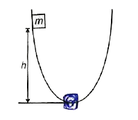 - चित्रानुसार m द्रव्यमान का ब्लॉक चिकनी परवलयाकार सतह पर h ऊँचाई से फिस...