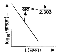 इस समीकरण की सहायता से k का मान ज्ञात कर सकते है। स्थिर ताप पर k का मान स्थिर रहता है। k का मात्रक `"सेकण्ड"^(-1)` या `"मिनट"^(-1)` है। .इस k का मान संलग्न में दर्शाये गए वक्र का ढाल `=-(k)/(2.303)` की सहायता से ज्ञात करते है। इस कोटि की अभिक्रिया में, स्थिर ताप पर किसी निश्चित अभिक्रिया के लिए k का मान सदैव स्थिर रहता है।