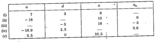 - निम्नलिखित सारणी में, रिक्त स्थानों को भरिए, जहाँ A.P. का प्रथम पद a, ...