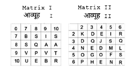 In each of the following questions, a word is represented by only one set of numbers as given in any one of the alternatives. The sets of numbers given in the alternatives are represented by two classes of alphabets as in two matrices given below. The columns and rows of Matrix I are numbered from 0 to 4 and that of Matrix II are numbered from 5 to 9. A letter from these matrices can be represented first by its row and next by its column, e.g. 'E' can be represented by 01, 13, etc. and 'L' can be represented by 56, 77 etc. Similarly, you have to identify the set for the word given in each question. AIRS