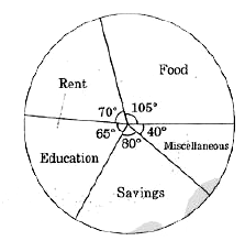 - संलग्न पाई चार्ट किसी आदमी के विभिन्न मदों में किए गए मासिक खर्च को दर...