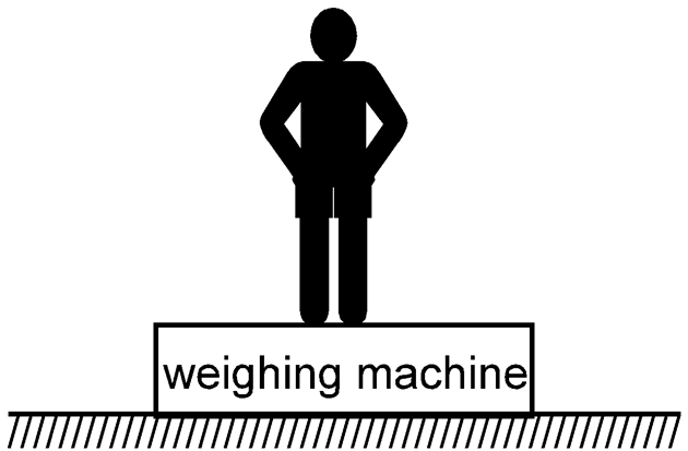 - A man of mass 60 Kg is standing on a weighing machine placed on ground...