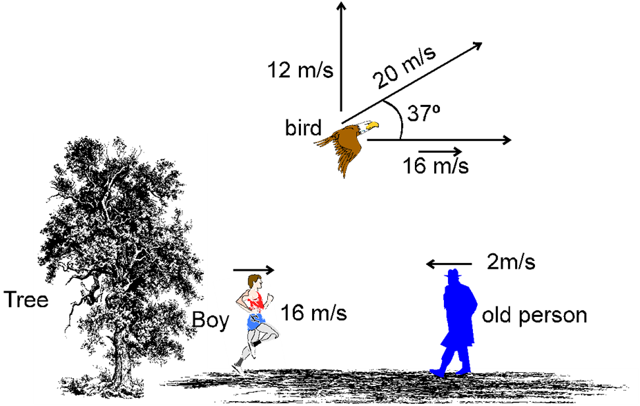- (1) Find out motion of tree, bird and old man as seen by boy. (2) Find...