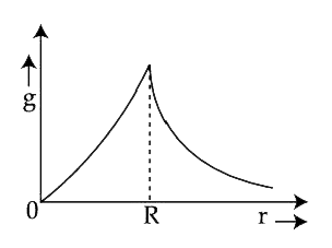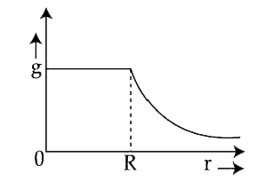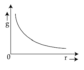 - पृथ्वी के केन्द्र से दूरी ( r ) के साथ गुरुत्वीय त्वरण (g) के मान का प...