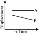 - निम्नांकित ग्राफ में दो वस्तुओं A तथा B का विस्थापन - समय ग्राफ प्रदर्...