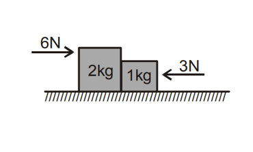 - Two forces of 6N and 6N acting on the two blocks of 2kg and 1kg kept o...