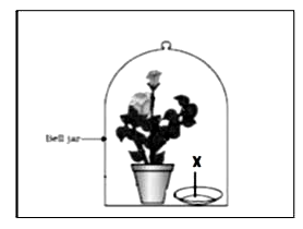 Observe the experimental setup shown below. Name the chemical indicated as ‘X’ that can absorb the gas which is evolved as a byproduct of respiration.