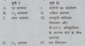- सूची I को सूची II के साथ सुमेलित कीजिए नीचे दिये गये विकल्पों में से...