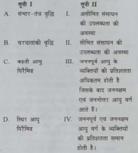 - सूची I को सूची II के साथ सुमेलित करो। नीचे दिए गए विकल्पों में से...