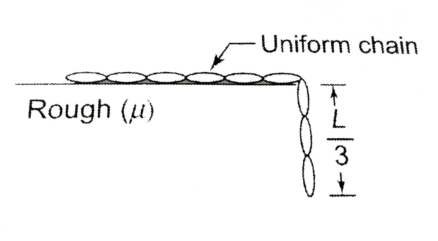 - A uniform chain of mass m and length l is lying on a horizontal table ...