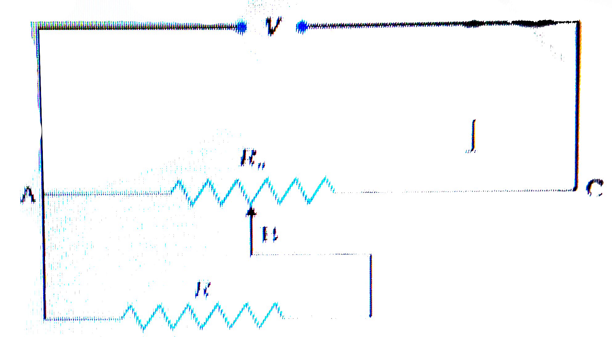 A resistance of R draws current from a potentiometer. The potentiometer wire, AB , has a total resistance of R_(0) , A voltage V is supplied to the potentiometer. Derive an expression for the voltage across R when the sliding contact is in the middle of potentialmeter wire.