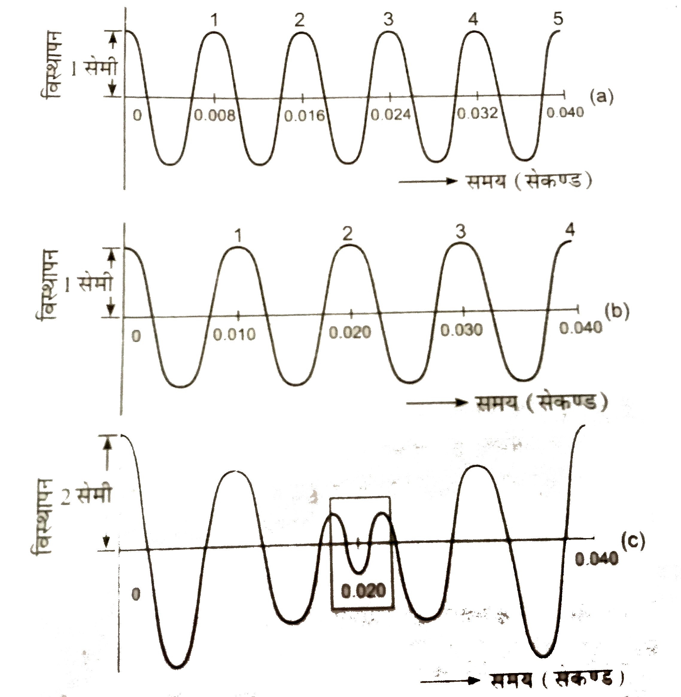 - 0 से लेकर 0 .040 सेकण्ड तक दो ऐसी ध्वनि तरंगों का समय-विस्थापन वक्र ब...