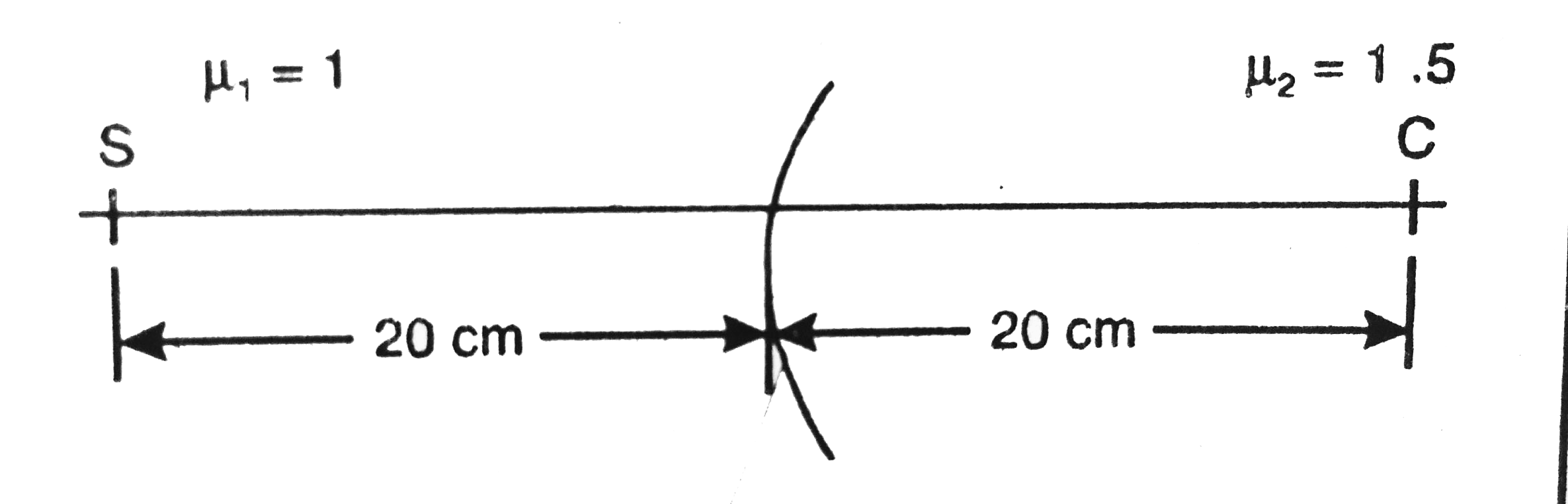 - A spherical surface of radius 30 cm separates two transparent media A ...