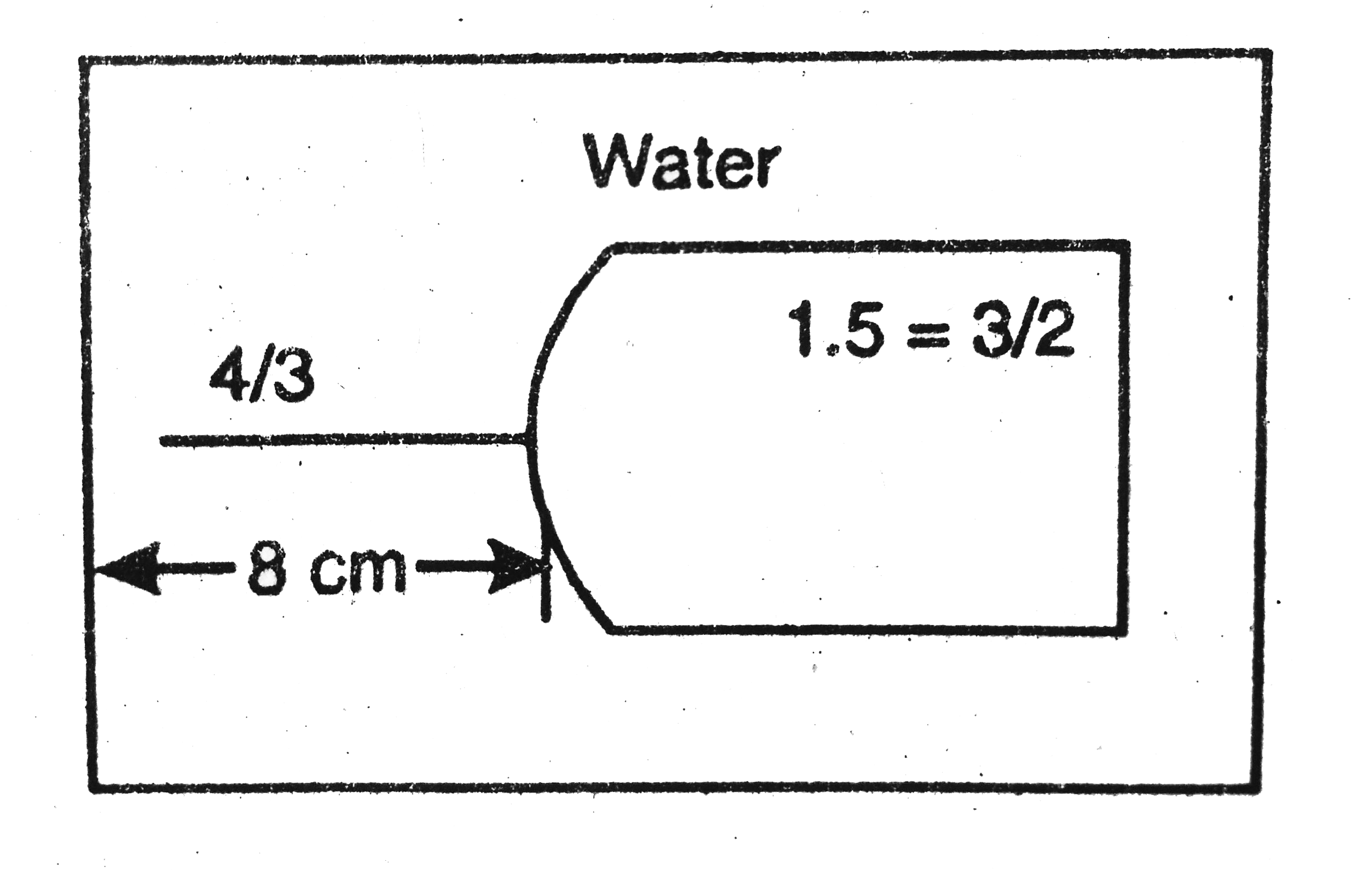 - One end of a cylindrical glass rod (mu = 1.5) of radius 1.0 cm is roun...