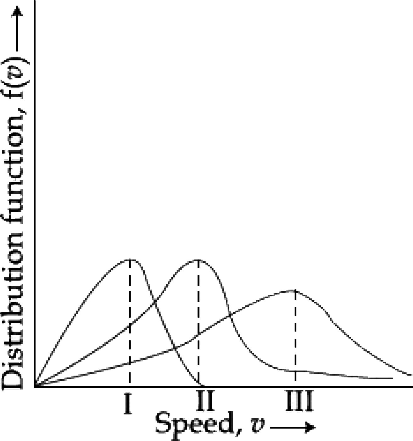 Among the following , the plot that shows the correct marking of most probable velocity (V_(MP)) average velocity (vecV) and root mean square velocity (V_(RMS) ) is :