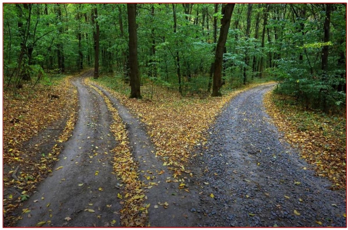 The poem brings out the importance of making a choice. Frost uses the two roads as metaphors for life. They stand for two choices, two alternative ways of life and two different directions of life. What choice we make, it makes 'all the difference in life'. The poet stands at a junction in a yellow forest. Two roads are branching out in two different directions. He is a single traveller and can't travel on both the roads at the same time. He looks at the first road as far as he can see, till it bends in the undergrowth.