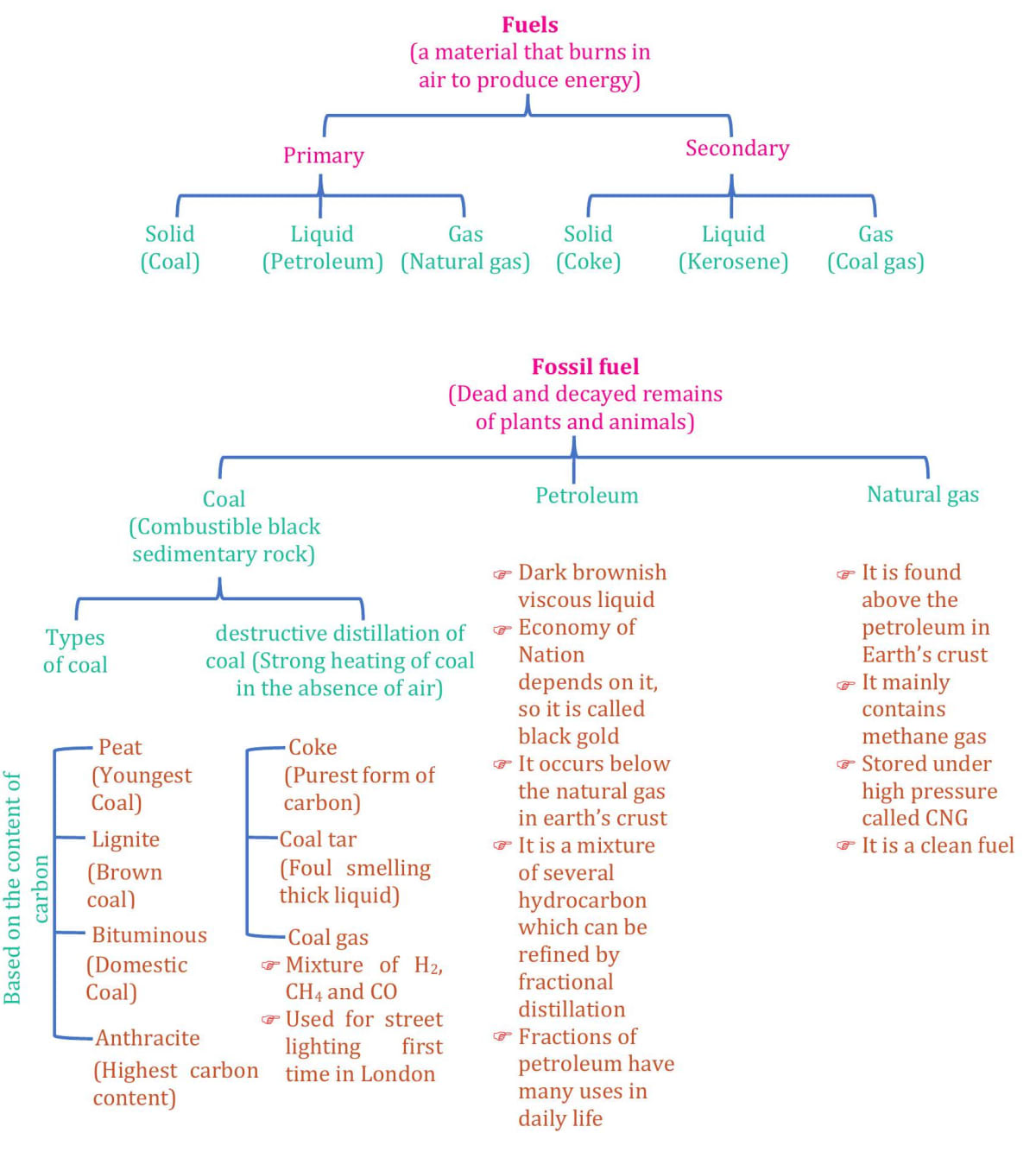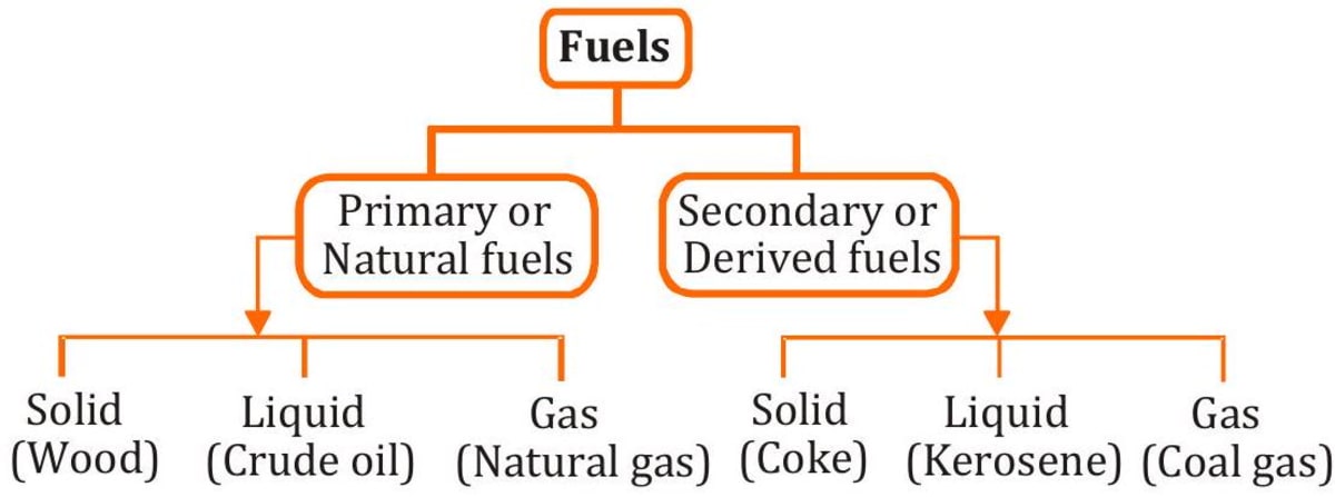 A fuel is a substance, which burns in air to produce energy without releasing harmful gases in large quantities. Fuels can be classified as natural (primary) fuels and derived (secondary) fuels. If a fuel is present in its natural state, it is called natural fuel. If a fuel is processed to improve its quality, it is called derived fuel.