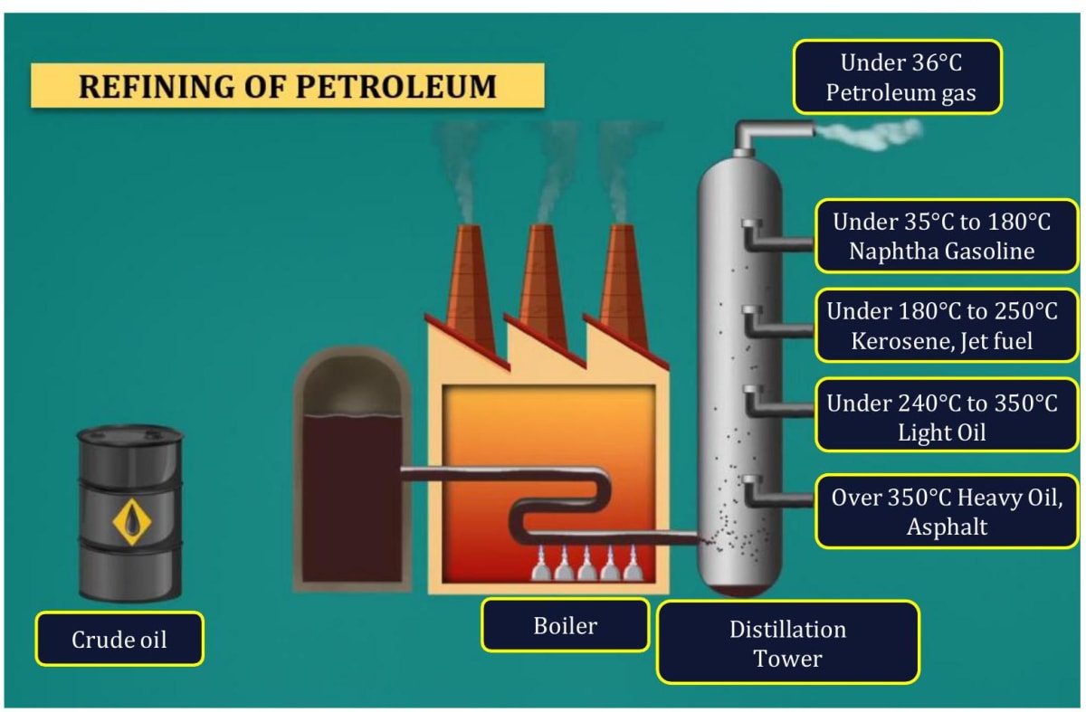 Petroleum is a mixture of several hydrocarbons. It also contains water, salt and rocky materials. It cannot be used in this crude form either as a fuel or a basic material to produce other useful components. Before being put to use, it has to be purified or refined.