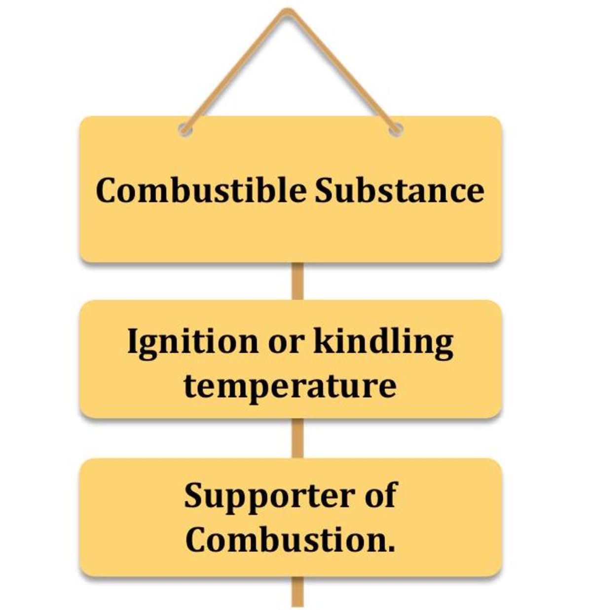 Ignition temperature: It is the minimum temperature to which a combustible substance must be heated, before it catches fire. Therefore, we see that a combustible substance cannot catch fire as long as its temperature is lower than its ignition temperature e.g. Ignition temperature of phosphorus is . So, unless phosphorus is heated to , it will not catch fire. However, if temperature of air is or more, phosphorus will catch fire without heating. Similarly, Kerosene oil and wood do not catch fire on their own at room temperature. But if both are heated a little, then kerosene oil will catch fire and not wood. This shows that ignition temperature of kerosene oil is lower than that of wood.