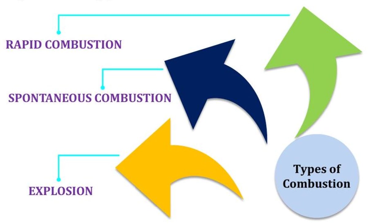 The combustion in which the gas burns rapidly and produces heat and light energy is called rapid combustion. For example, when a burning matchstick is brought near a gas burner and the gas tap is opened, the gas immediately starts burning with the production of heat and light energy. For example, Petrol, LPG, spirit, etc.