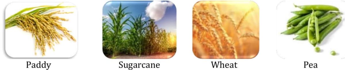 Rabi crops: The crops grown in the winter season (October to March) are called Rabi crops. E.g. Wheat, gram, pea, mustard and linseed.