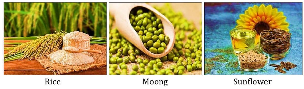 Kharif crops: The crops which are sown in the rainy season are called Kharif crops. e.g. Paddy, maize, soyabean, groundnut and cotton.